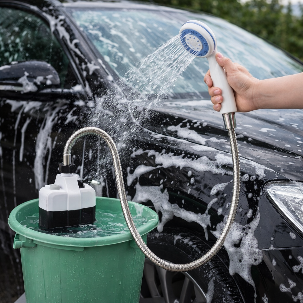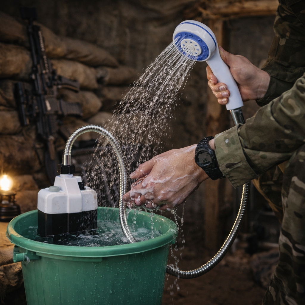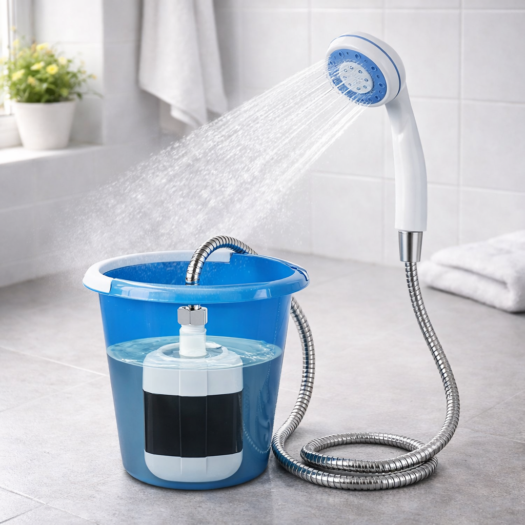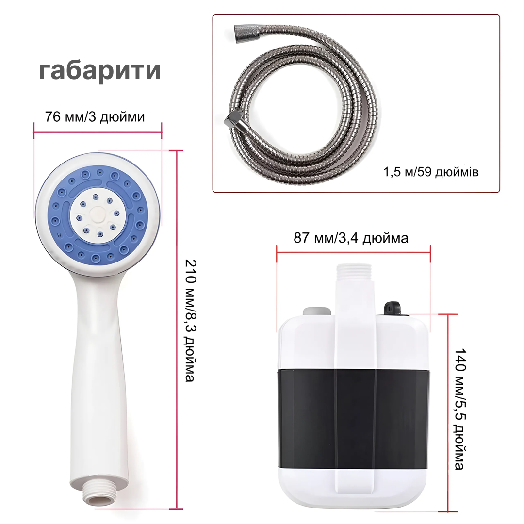 Опустив у воду, натиснув кнопку — і маєш повноцінний душ. Без монтажу, без складних систем.